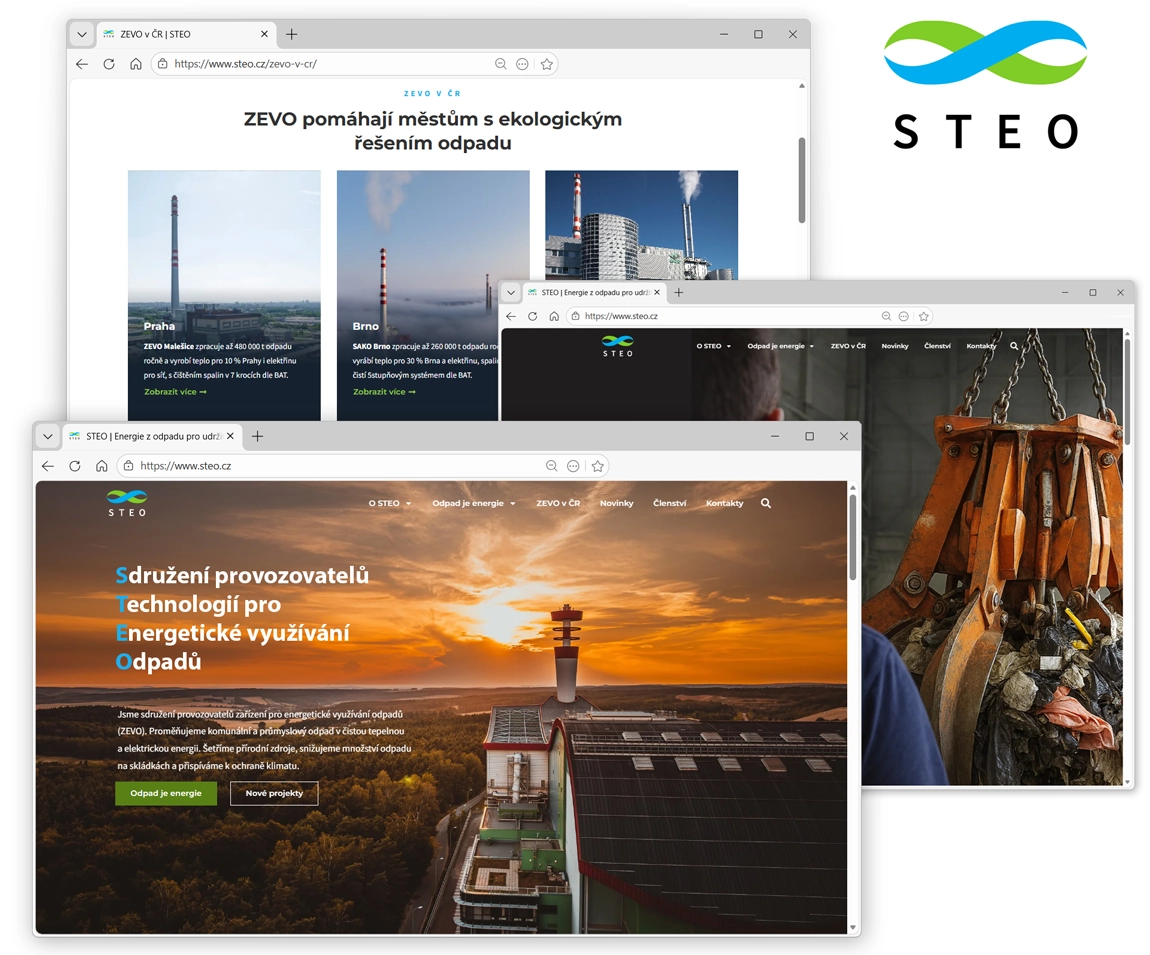 Sdružení provozovatelů technologií pro energetické využívání odpadů (STEO) na svých nových webových stránkách www.steo.cz představuje aktuální témata z oblasti zpracování komunálního a průmyslového odpadu na čistou tepelnou a elektrickou energii v zařízeních pro energetické využívání odpadů (ZEVO).